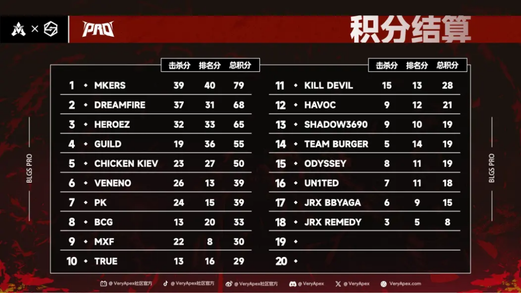 VeryApex社区- VK杯-YEAR 5 PRO训练赛#0903 BC组总排名积分: