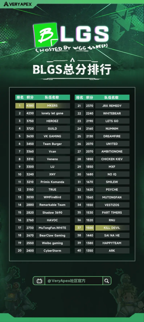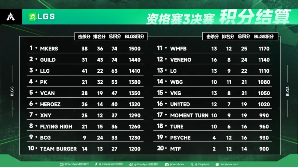VeryApex社区- VK杯-YEAR 5 PRO训练赛#0903 BC组总排名积分: