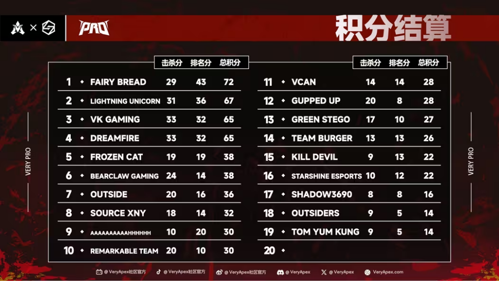 VeryApex社区- VK杯-YEAR 5 PRO训练赛#0321 总排名积分: