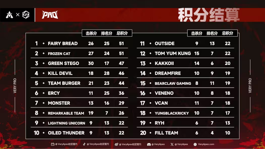 VeryApex社区- VK杯-YEAR 5 PRO训练赛#0324 总排名积分: