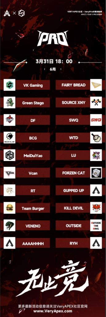 VeryApex社区- VK杯YEAR 5 PRO训练赛#0331 参赛名单如图: