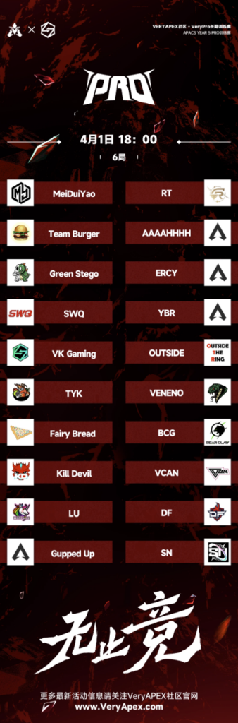 VeryApex社区- VK杯YEAR 5 PRO训练赛#0401 参赛名单如图: