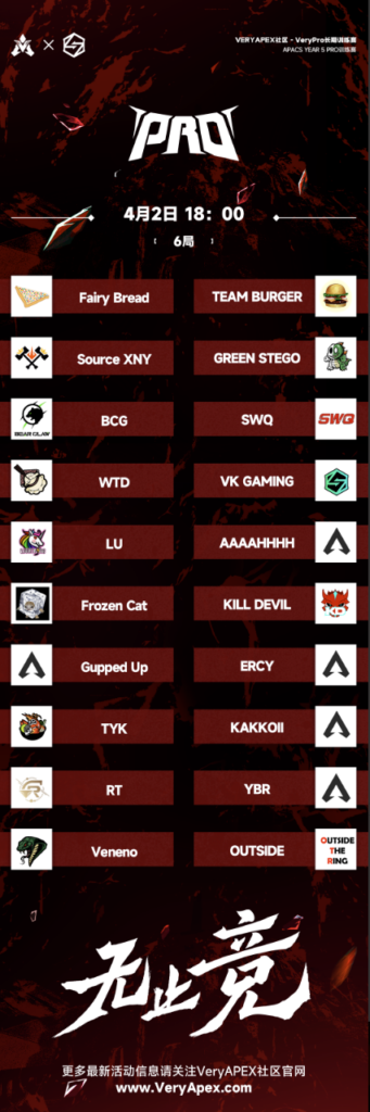 VeryApex社区- VK杯YEAR 5 PRO训练赛#0402 参赛名单如图: