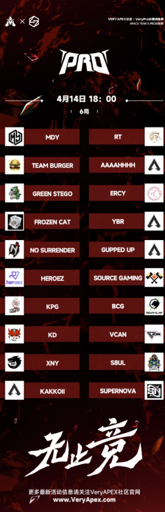 VeryApex社区- VK杯YEAR 5 PRO训练赛#0414 参赛名单如图: