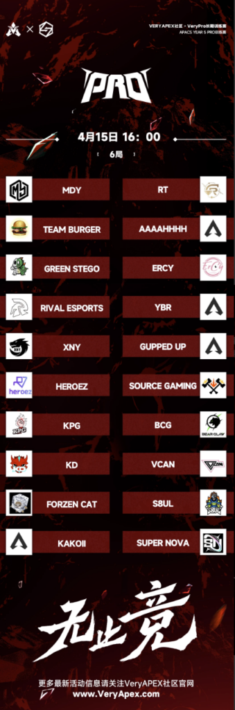 VeryApex社区- VK杯YEAR 5 PRO训练赛#0415 参赛名单如图: