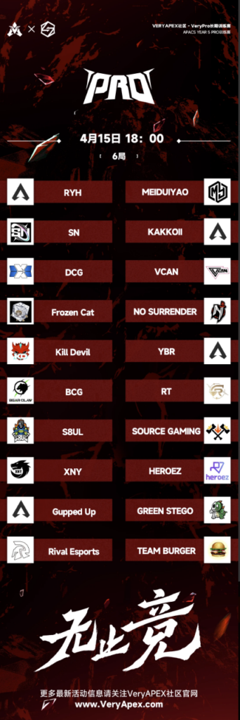 VeryApex社区- VK杯YEAR 5 PRO训练赛#0415 参赛名单如图: