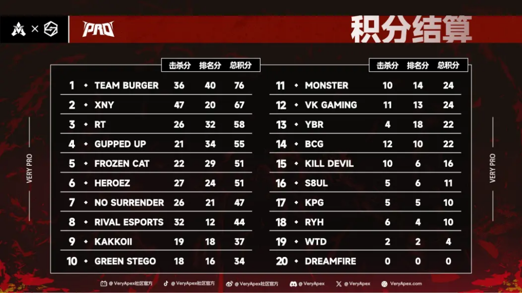 VeryApex社区- VK杯-YEAR 5 PRO训练赛#0902 总排名积分:
