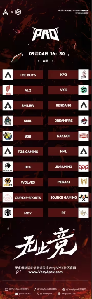VeryApex社区- VK杯YEAR 5 PRO训练赛#0903 参赛名单如图: