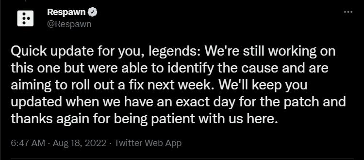 “我们仍在努力解决这个问题,但已经能够确定原因,并计划在下周推出修复补丁。当我们有确切的补丁日期时,我们会及时通知你们,并再次感谢你们对我们的耐心等待。”